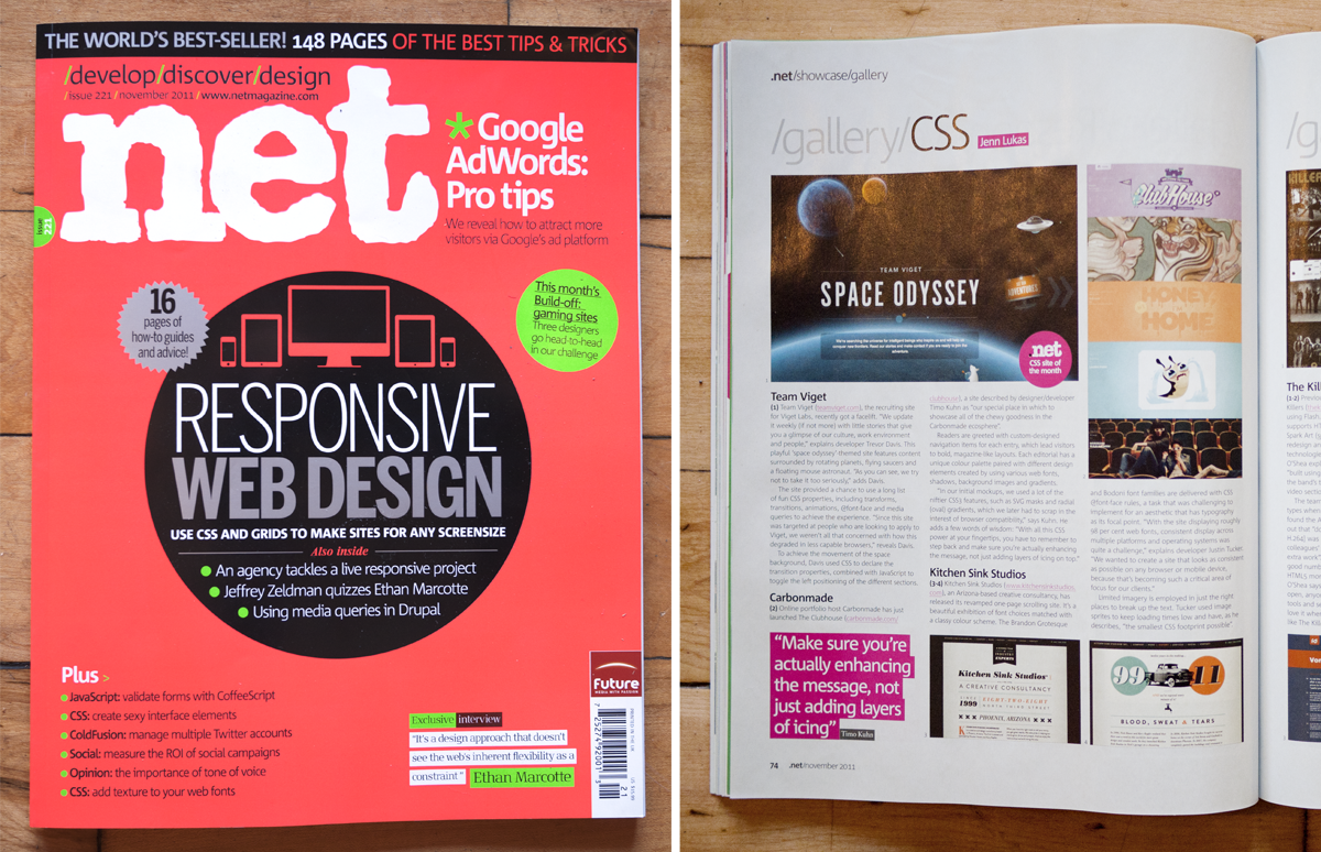 The Clubhouse was featured across the internets and written up by Jenn Lukas as a fine example in .net mag’s CSS gallery section.